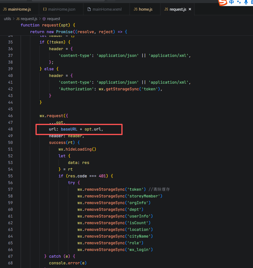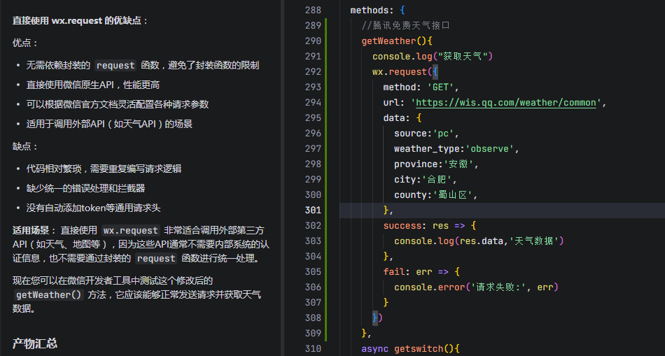 1.项目里自定义的request请求2.使用微信原生的接口请求技巧:因为原项目在调用接口前会进行url拼接,这就会导致在调用外部接口会将url拼接成错误的网址,因此可以使用wx自带的request来实现调用外部接口,避免url拼接
